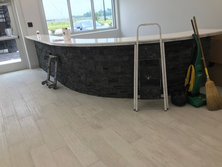 Brand Construction Services was the contractor for Clean As New in Baytown, TX. This recent project consisted of a new construction exterior for a modern, custom office build out, office remodel, office break room, break room cabinets, a custom office reception desk, and an ADA office restroom.